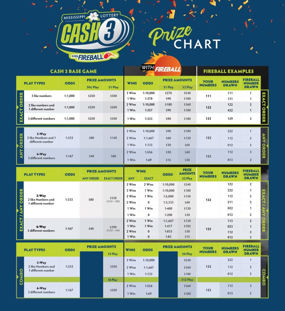 Fireball is an additional drawing taking place at the same time as the Cash 3 drawings. One single Fireball number – from zero to nine – will be drawn for the midday drawings and one for the late drawings.
