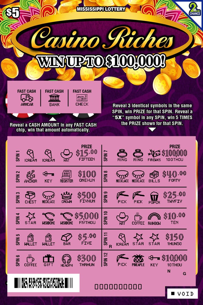 Reveal 3 identical symbols in the same spin, win prize for that spin. Reveal a “5X” symbol in any spin, win 5 times the prize shown for that spin.
