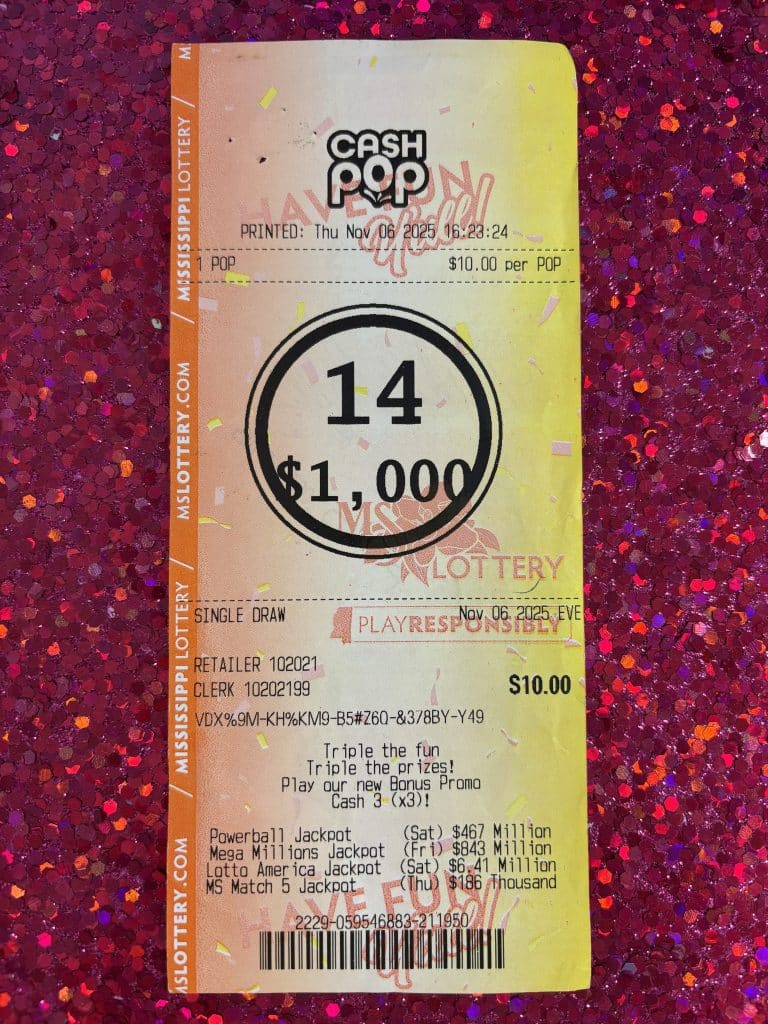A Terry man won $1,000 on a Cash Pop ticket from Brando’s Tobacco Store in Byram.