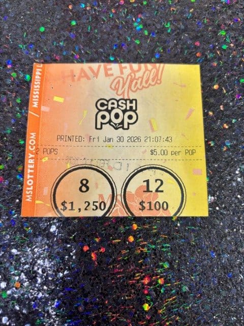 A Bay Springs man won $1,250 on a Cash Pop ticket from Denson Food Mart Inc in Bay Springs.