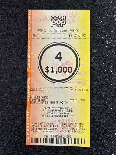 A Bentonia woman won $1,000 on a Cash Pop ticket from Flora Shell in Flora.