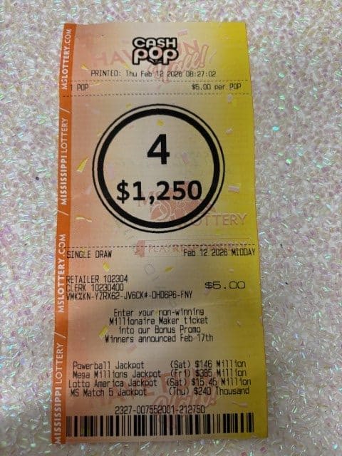 Every effort is made to ensure the accuracy of information contained on this website. This website, however, is not the final authority on winning numbers, prizes, games, or other information. Winning numbers are not official until validated by the Mississippi Lottery and its independent auditors. All winning tickets must be validated by the Mississippi Lottery before prizes will be paid.