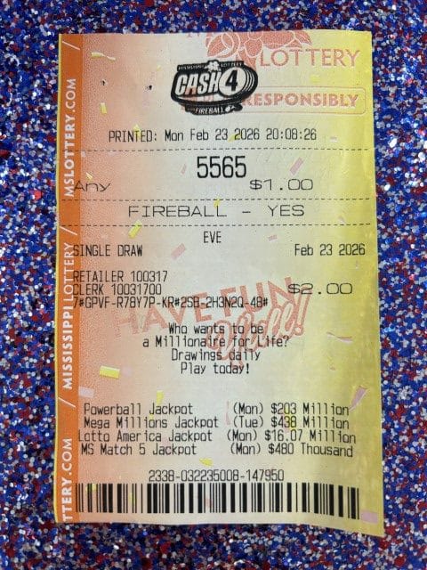 Every effort is made to ensure the accuracy of information contained on this website. This website, however, is not the final authority on winning numbers, prizes, games, or other information. Winning numbers are not official until validated by the Mississippi Lottery and its independent auditors. All winning tickets must be validated by the Mississippi Lottery before prizes will be paid.