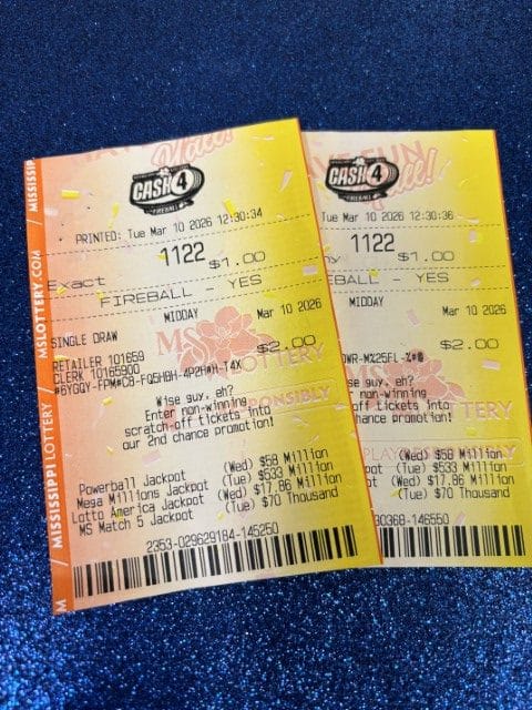 A Braxton woman won $12,174 on two Cash 4 tickets from City Tobacco & Vape in Mendenhall.