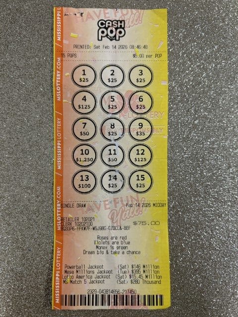 A Byram man won $1,250 on a Cash Pop ticket from Brando’s Tobacco Store in Byram.
