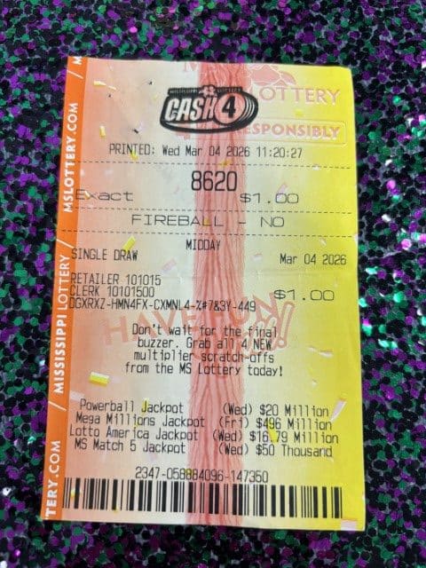 Every effort is made to ensure the accuracy of information contained on this website. This website, however, is not the final authority on winning numbers, prizes, games, or other information. Winning numbers are not official until validated by the Mississippi Lottery and its independent auditors. All winning tickets must be validated by the Mississippi Lottery before prizes will be paid.