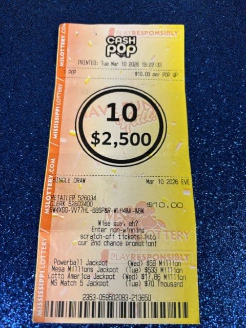 Every effort is made to ensure the accuracy of information contained on this website. This website, however, is not the final authority on winning numbers, prizes, games, or other information. Winning numbers are not official until validated by the Mississippi Lottery and its independent auditors. All winning tickets must be validated by the Mississippi Lottery before prizes will be paid.