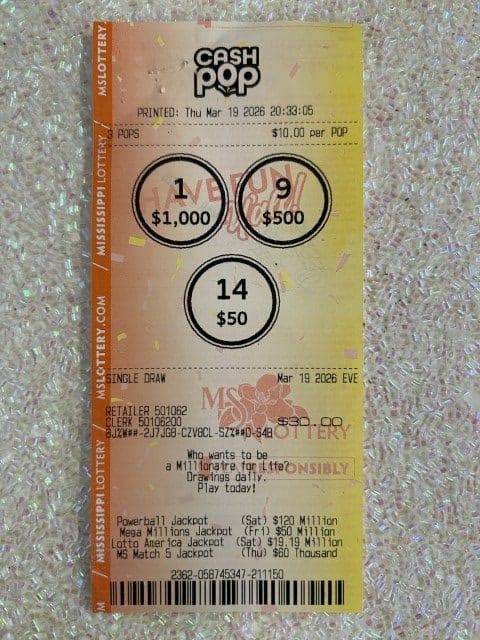 Every effort is made to ensure the accuracy of information contained on this website. This website, however, is not the final authority on winning numbers, prizes, games, or other information. Winning numbers are not official until validated by the Mississippi Lottery and its independent auditors. All winning tickets must be validated by the Mississippi Lottery before prizes will be paid.