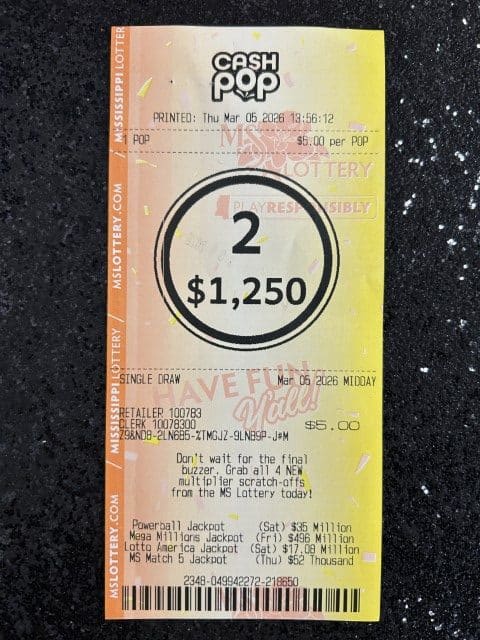 Every effort is made to ensure the accuracy of information contained on this website. This website, however, is not the final authority on winning numbers, prizes, games, or other information. Winning numbers are not official until validated by the Mississippi Lottery and its independent auditors. All winning tickets must be validated by the Mississippi Lottery before prizes will be paid.