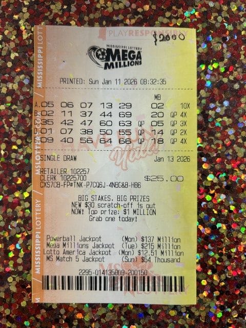 Every effort is made to ensure the accuracy of information contained on this website. This website, however, is not the final authority on winning numbers, prizes, games, or other information. Winning numbers are not official until validated by the Mississippi Lottery and its independent auditors. All winning tickets must be validated by the Mississippi Lottery before prizes will be paid.