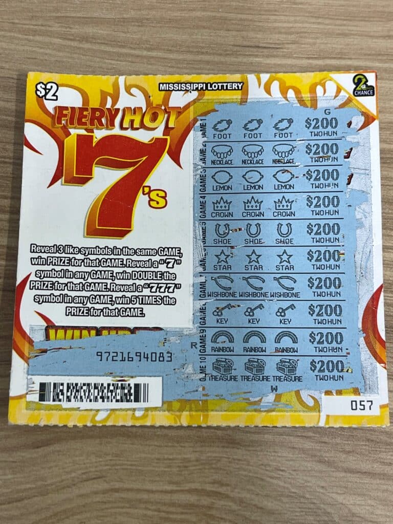 A Gautier woman won $2,000 on a $2 – Fiery Hot 7s ticket purchased from Martin Bluff Grocery in Gautier.