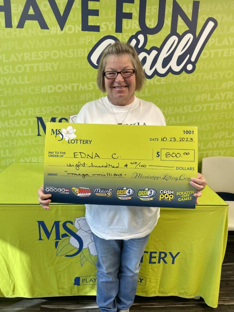A Grenada woman won $800 on a Mega Millions from Sprint Mart #4114 in Grenada.
