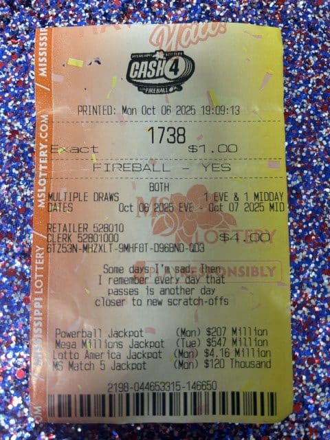 Every effort is made to ensure the accuracy of information contained on this website. This website, however, is not the final authority on winning numbers, prizes, games, or other information. Winning numbers are not official until validated by the Mississippi Lottery and its independent auditors. All winning tickets must be validated by the Mississippi Lottery before prizes will be paid.