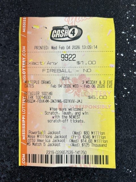Every effort is made to ensure the accuracy of information contained on this website. This website, however, is not the final authority on winning numbers, prizes, games, or other information. Winning numbers are not official until validated by the Mississippi Lottery and its independent auditors. All winning tickets must be validated by the Mississippi Lottery before prizes will be paid.