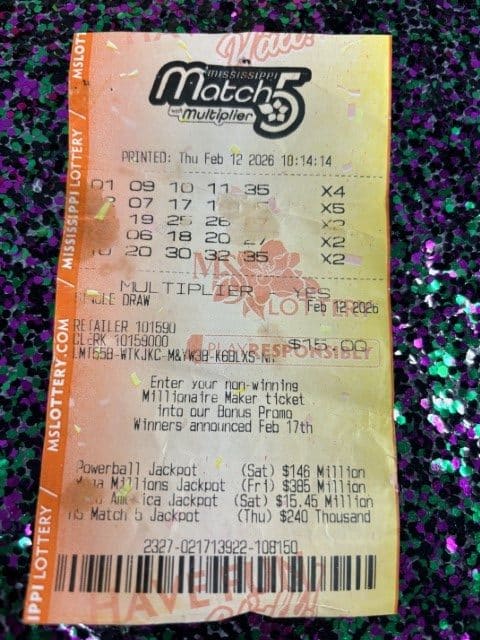 Every effort is made to ensure the accuracy of information contained on this website. This website, however, is not the final authority on winning numbers, prizes, games, or other information. Winning numbers are not official until validated by the Mississippi Lottery and its independent auditors. All winning tickets must be validated by the Mississippi Lottery before prizes will be paid.