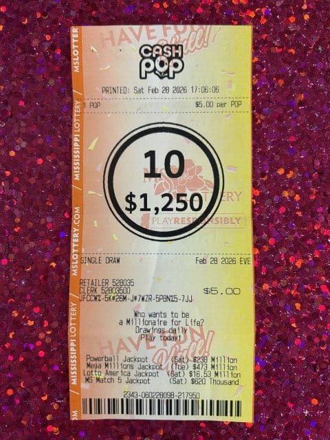 Every effort is made to ensure the accuracy of information contained on this website. This website, however, is not the final authority on winning numbers, prizes, games, or other information. Winning numbers are not official until validated by the Mississippi Lottery and its independent auditors. All winning tickets must be validated by the Mississippi Lottery before prizes will be paid.