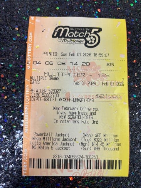 Every effort is made to ensure the accuracy of information contained on this website. This website, however, is not the final authority on winning numbers, prizes, games, or other information. Winning numbers are not official until validated by the Mississippi Lottery and its independent auditors. All winning tickets must be validated by the Mississippi Lottery before prizes will be paid.