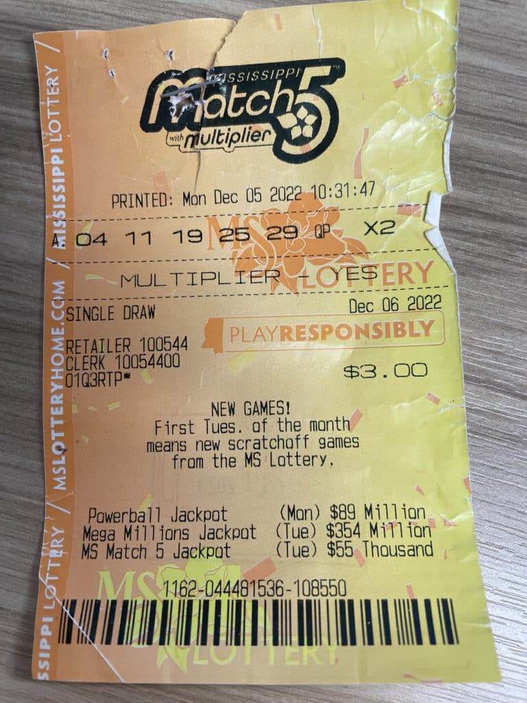 A Jackson man won $55,000 on a Mississippi Match 5 ticket from the Dec. 6, 2022, drawing purchased from Thind Bros on Beasley Rd., Jackson.