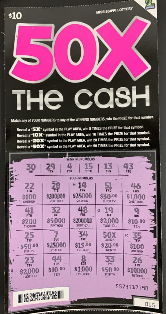 A Jackson player won $1,000 on a 50x the Cash scratch-off game purchased from Exxon on Old Fannin Rd., Brandon.