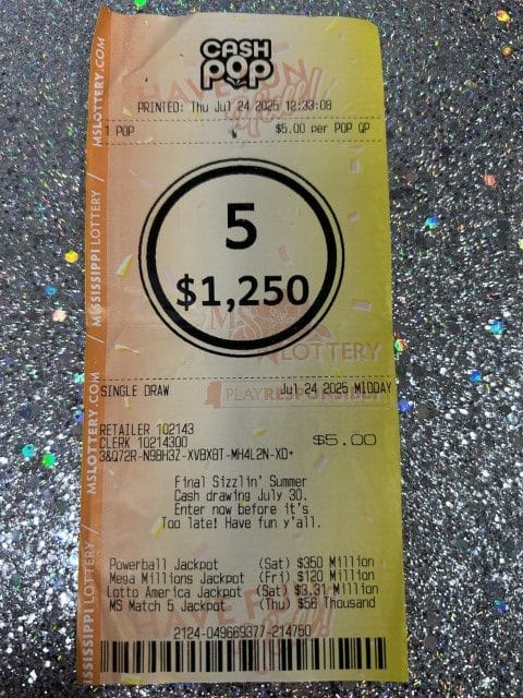 Every effort is made to ensure the accuracy of information contained on this website. This website, however, is not the final authority on winning numbers, prizes, games, or other information. Winning numbers are not official until validated by the Mississippi Lottery and its independent auditors. All winning tickets must be validated by the Mississippi Lottery before prizes will be paid.