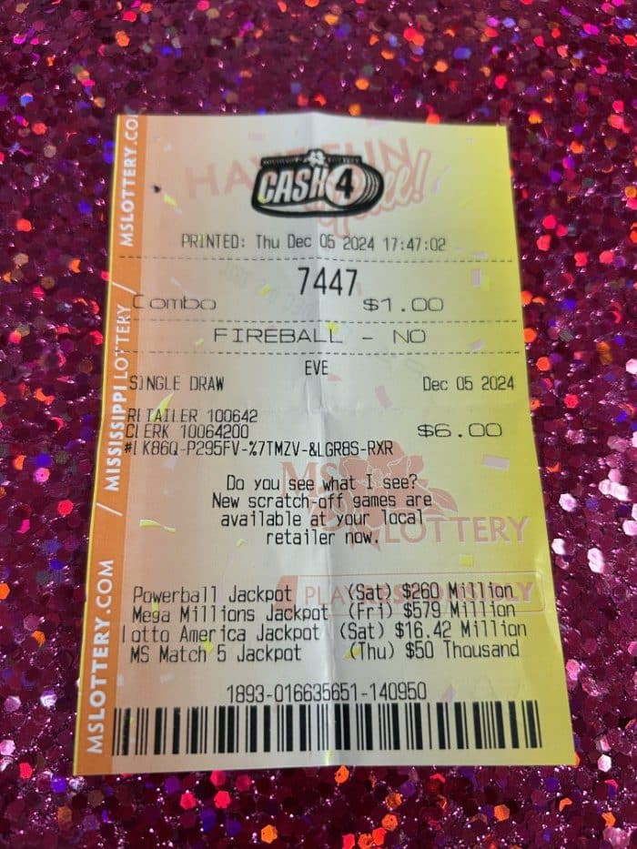 Every effort is made to ensure the accuracy of information contained on this website. This website, however, is not the final authority on winning numbers, prizes, games, or other information. Winning numbers are not official until validated by the Mississippi Lottery and its independent auditors. All winning tickets must be validated by the Mississippi Lottery before prizes will be paid.