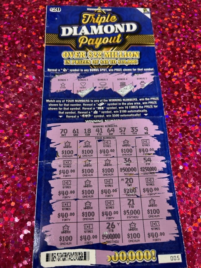 A Laurel woman won $5,000 on a $20 scratch-off ticket from Big B #2 in Ellisville.