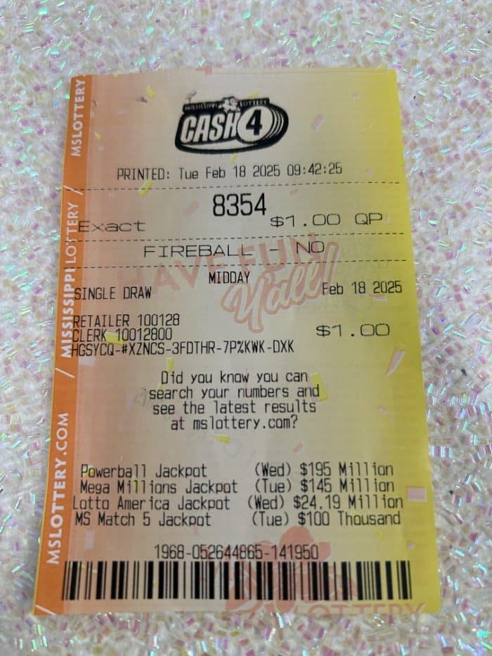 Every effort is made to ensure the accuracy of information contained on this website. This website, however, is not the final authority on winning numbers, prizes, games, or other information. Winning numbers are not official until validated by the Mississippi Lottery and its independent auditors. All winning tickets must be validated by the Mississippi Lottery before prizes will be paid.