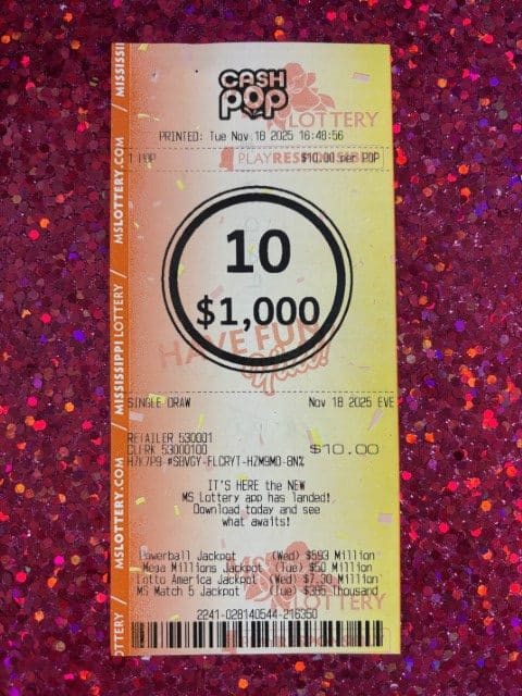 A Madison man won $1,000 on a Cash Pop ticket from Quiktrip #7249 in Flowood.