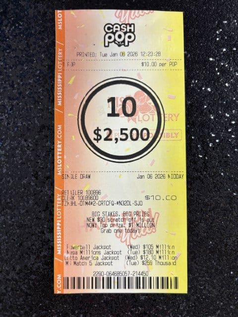 A McComb man won $2,500 on a Cash Pop ticket from Mr Quick Mart in Summit.