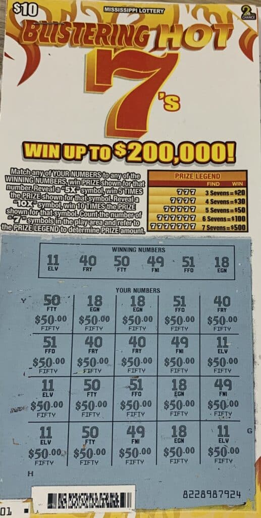 Every effort is made to ensure the accuracy of information contained on this website. This website, however, is not the final authority on winning numbers, prizes, games, or other information. Winning numbers are not official until validated by the Mississippi Lottery and its independent auditors. All winning tickets must be validated by the Mississippi Lottery before prizes will be paid.