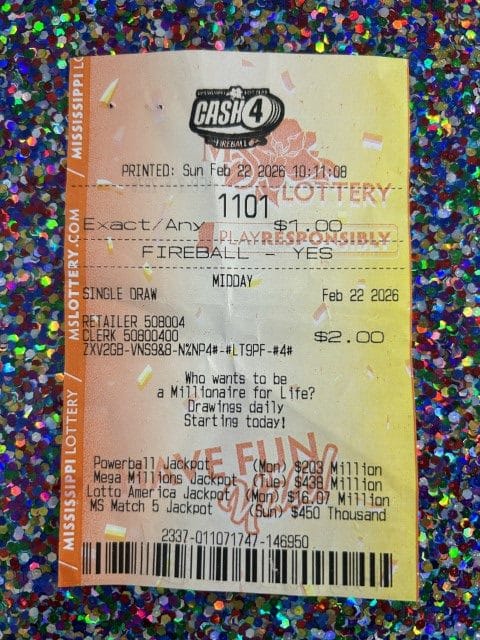 Every effort is made to ensure the accuracy of information contained on this website. This website, however, is not the final authority on winning numbers, prizes, games, or other information. Winning numbers are not official until validated by the Mississippi Lottery and its independent auditors. All winning tickets must be validated by the Mississippi Lottery before prizes will be paid.