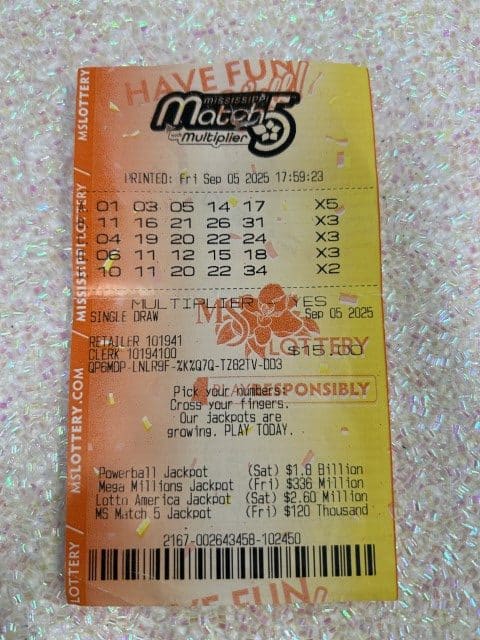 An Ocean Springs woman won $1,000 on a Match 5 ticket from Raj J Mart in Biloxi.