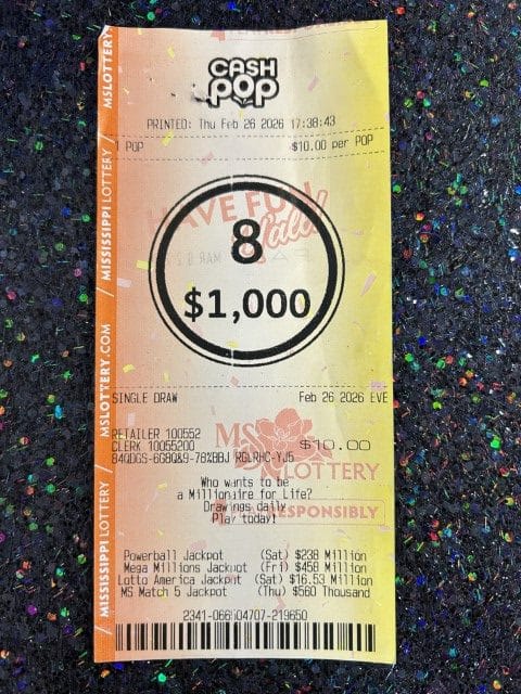 A Pachuta woman won $1,000 on a Cash Pop ticket from Alliance Travel Center in Pachuta.