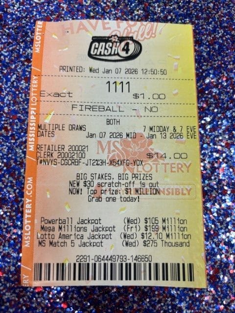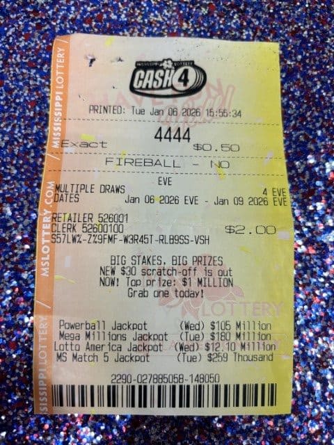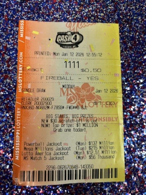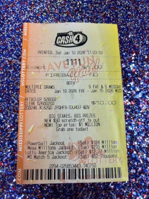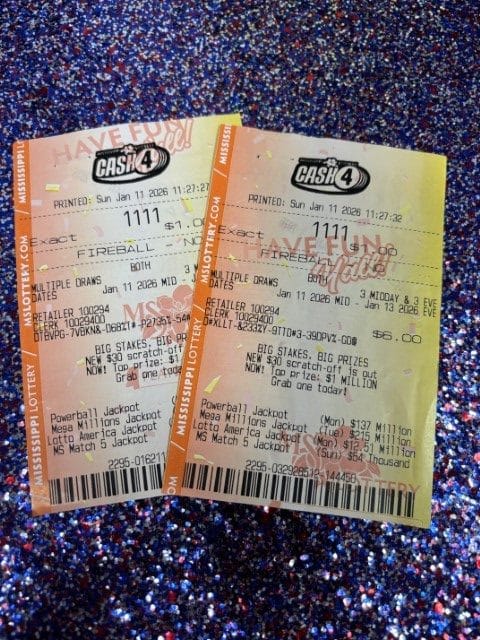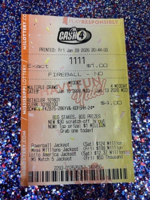 A Vicksburg woman won $10,000 on two Cash 4 tickets from Alcorn Super Mart in Vicksburg.