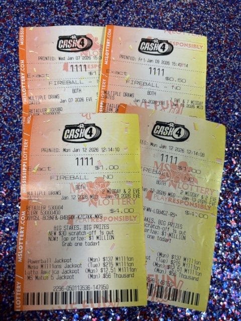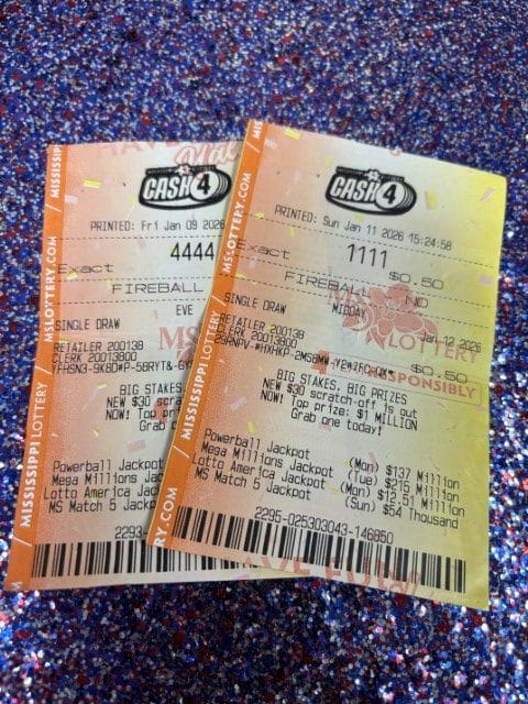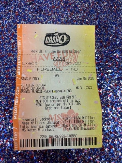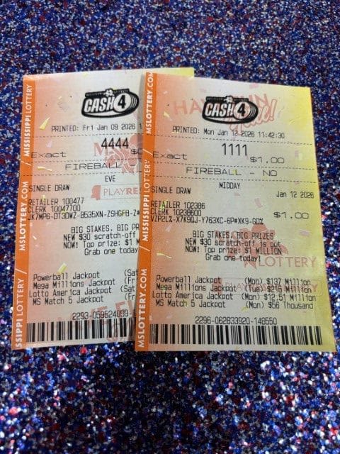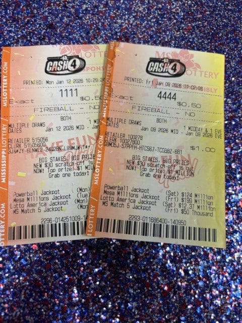 A Jackson man won $10,000 on two Cash 4 tickets from Flora Shell in Flora.