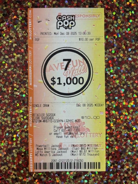 A Pascagoula woman won $5,000 on a scratch-off ticket from Ramey’s #22 in Pascagoula.
