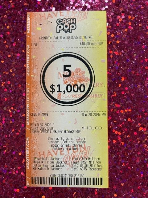 A Vossburg woman won $50,000 on a scratch-off ticket from Circle K Store #2723391 in Sandersville.
