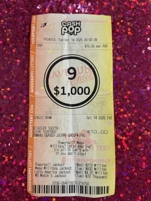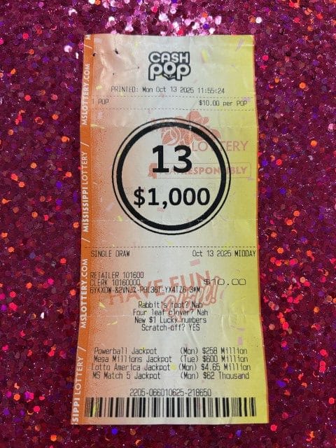 A Jackson man won $1,000 on a Cash Pop ticket from Courtland Market in Courtland.