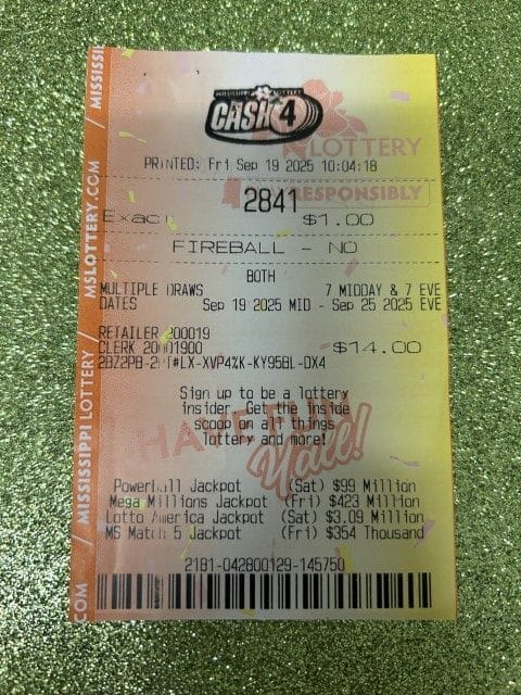 A Magee man won $1,000 on a Cash Pop ticket from Fleetway #157 in Mendenhall.