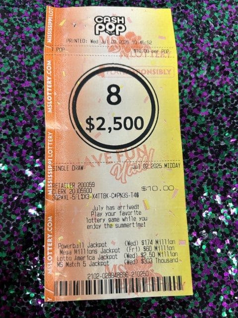 A Bassfield woman won $1,000 on a Cash Pop ticket from Fast Mart 33 in Sumrall.