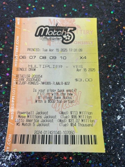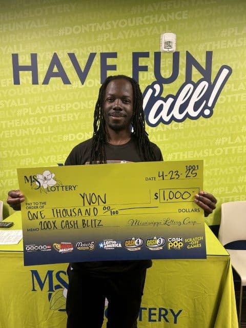 A Canton man won $1,000 on a Match 5 ticket from Quickstop in Vaiden.