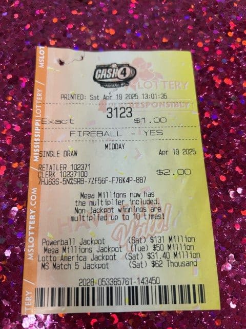 A Port Gibson woman won $5,000 on a Cash 4 ticket from Nick’s One Stop of Port Gibson in Port Gibson.