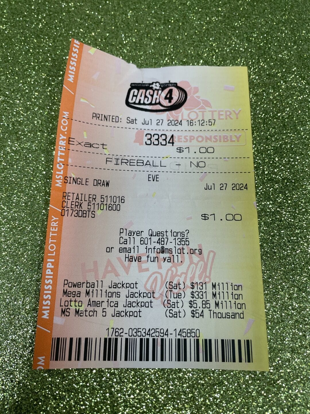 A Biloxi woman won $5,000 on a Cash 4 ticket from Keith’s Superstore #90 in D’ Iberville.
