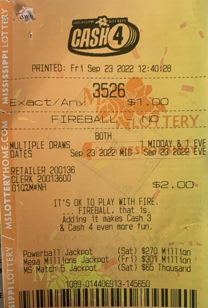 Every effort is made to ensure the accuracy of information contained on this website. This website, however, is not the final authority on winning numbers, prizes, games, or other information. Winning numbers are not official until validated by the Mississippi Lottery and its independent auditors. All winning tickets must be validated by the Mississippi Lottery before prizes will be paid.