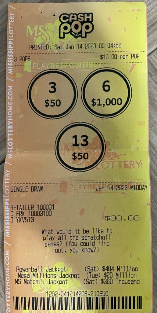 A Perkinston man won $1,000 on a Cash POP ticket purchased from Big Level Grocery on King Bee Rd., Penkinston.