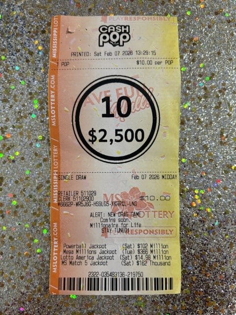 A Petal player won $2,500 on a Cash Pop ticket from Keith’s Superstore #175 in Petal.