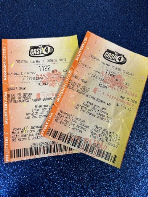 A Pheba man won $5,800 on two Cash 4 tickets from North End Plaza in West Point and Texaco Meat Mart in Starkville.