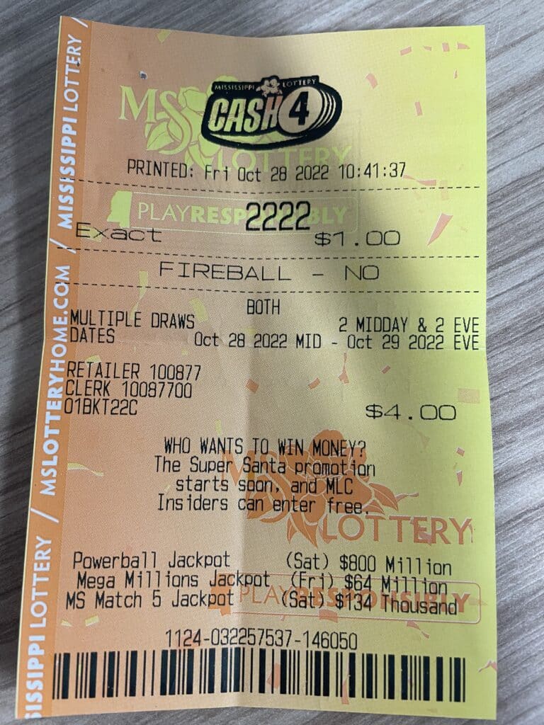 Every effort is made to ensure the accuracy of information contained on this website. This website, however, is not the final authority on winning numbers, prizes, games, or other information. Winning numbers are not official until validated by the Mississippi Lottery and its independent auditors. All winning tickets must be validated by the Mississippi Lottery before prizes will be paid.