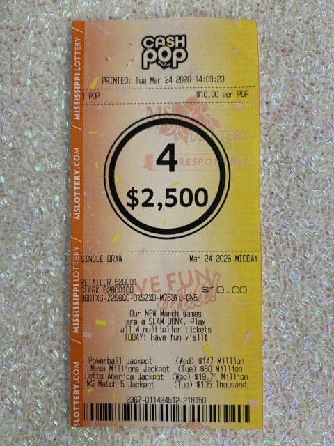 Every effort is made to ensure the accuracy of information contained on this website. This website, however, is not the final authority on winning numbers, prizes, games, or other information. Winning numbers are not official until validated by the Mississippi Lottery and its independent auditors. All winning tickets must be validated by the Mississippi Lottery before prizes will be paid.