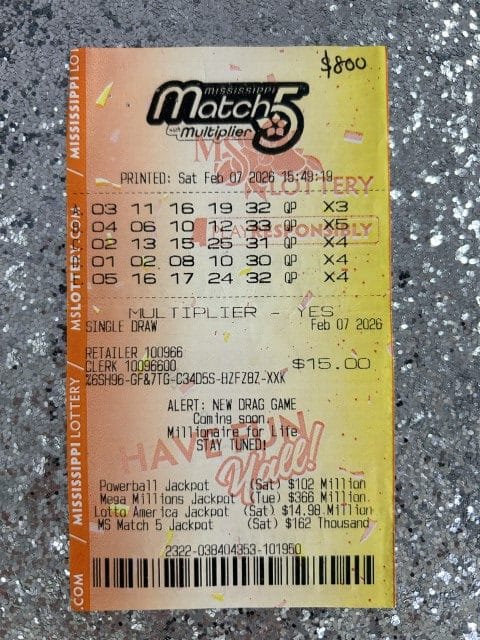 A Sallis man won $800 on a Match 5 ticket from Mahavir in Kosciusko.